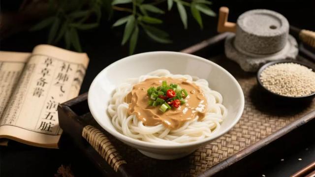 麻醬面恰好成了調理身體的“天然良方”。芝麻醬由白芝麻磨制而成,《本草備要》記載其“補肺氣、潤五臟”,經過石磨研磨后,營養更易被脾胃吸收,既能補充夏季消耗的能量,又不會給虛弱的腸胃增添負擔。搭配的面條則是小麥制品,性溫味甘,能健脾養胃,為秋冬的“藏”打下基礎。