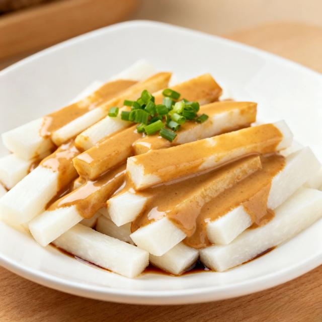 ? 做法:山藥去皮切條,開水焯 1 分鐘后過涼水,保持脆嫩口感;碗中放芝麻醬,加少許溫水攪勻,再倒入生抽、香醋調成醬汁;把醬汁淋在山藥條上,撒上蔥花,拌勻就能吃。芝麻醬的醇厚裹著山藥的脆甜,一口下去清爽不膩,解秋燥超合適!