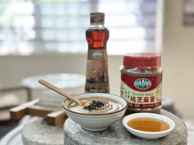 醒面期間準備餡料,傳統青團多是豆沙餡,這次的芝麻醬餡料更具風味:純芝麻醬中加入少許蜂蜜攪拌均勻,再撒上熟芝麻增香,口感綿密不膩,既有芝麻的醇香,又有淡淡的甜味,搭配艾草的清香,口感層次豐富,老人小孩都愛吃。