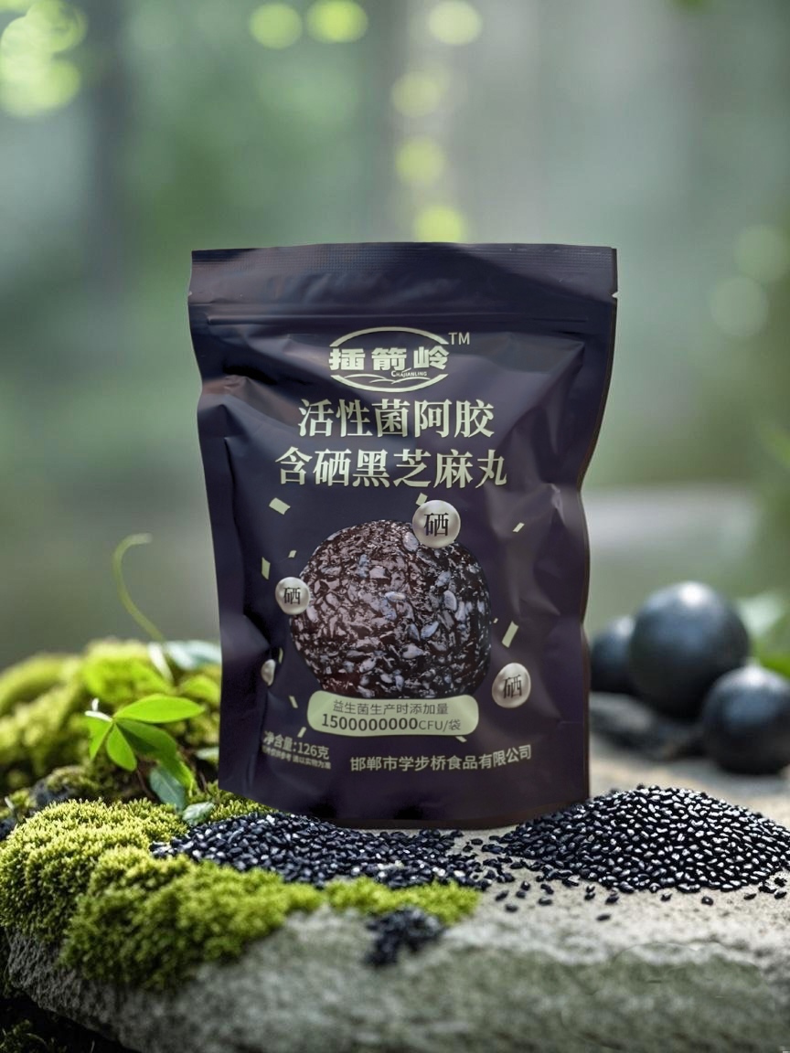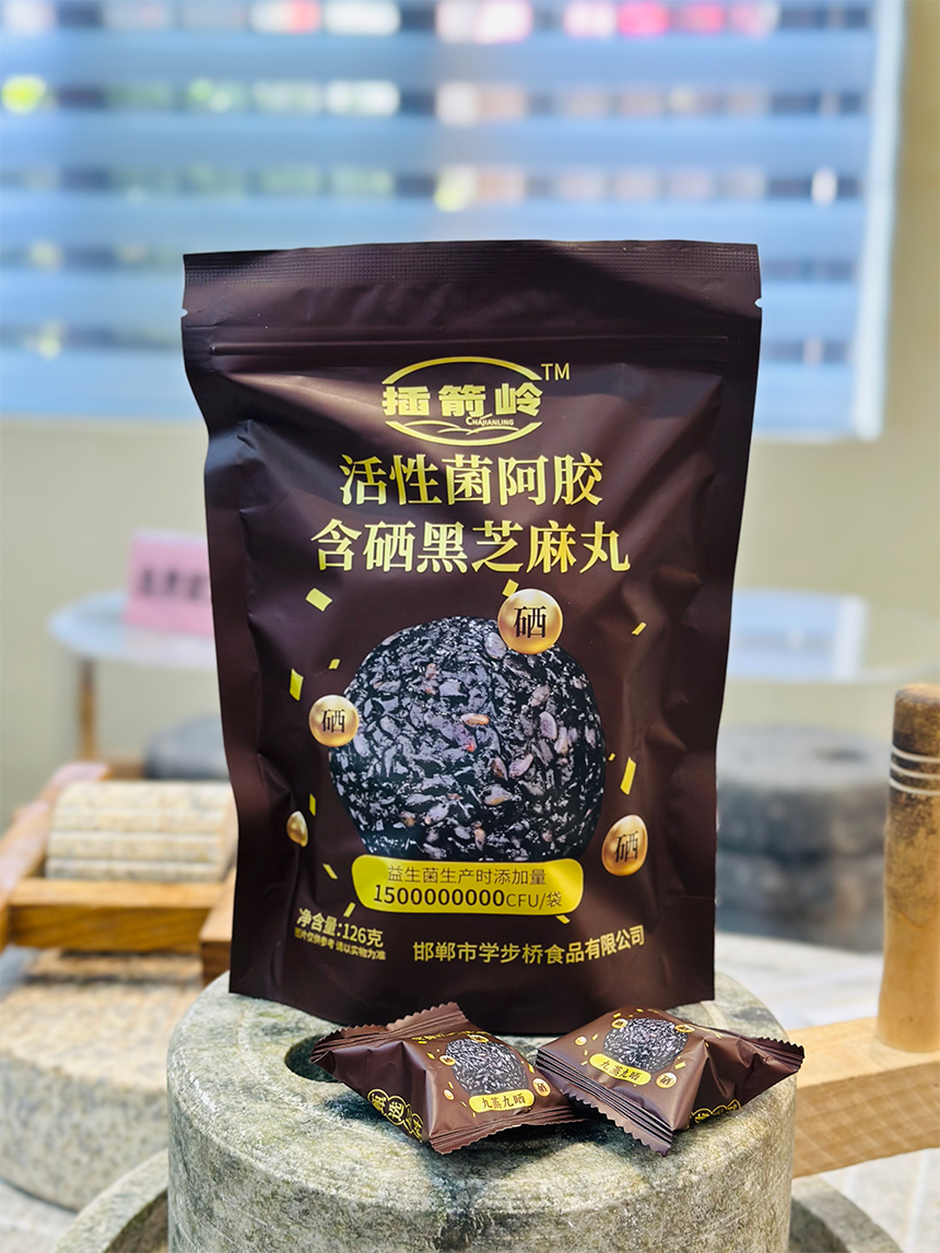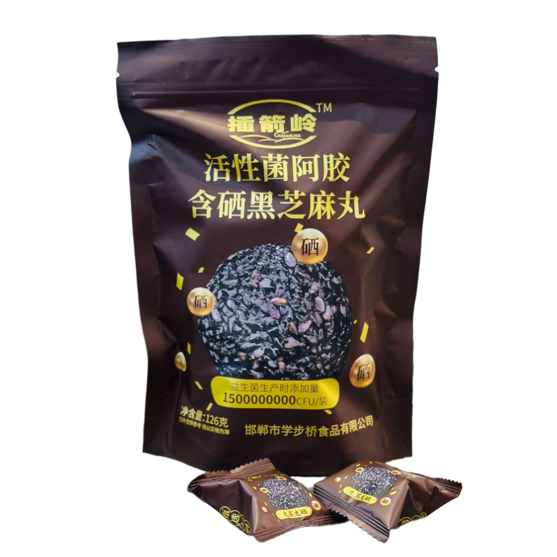 產(chǎn)品介紹:活性菌阿膠含硒黑芝麻丸是一款養(yǎng)生小零食,以黑芝麻、阿膠為主要原料,添加低聚異麥芽糖、木糖醇等輔料,還特別添加了動(dòng)物雙歧桿菌乳亞種、副干酪乳桿菌、植物乳桿菌等活性益生菌。獨(dú)立小包裝設(shè)計(jì),方便攜帶和保存,開(kāi)袋即食,口感軟糯香甜,有濃郁的芝麻香,味道純正細(xì)膩。